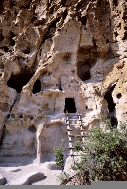 Ancestral Puebloan (Anasazi); Cliff Dwellings with Ladder; 1100-1550; Bandelier National Monument, Los Alamos, New Mexico, United States