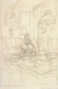 Alberto Giacometti; Annette Sewing; 1954; 51.1 x 34 cm