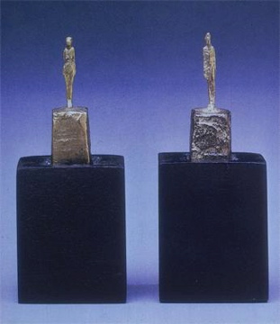 Alberto Giacometti; Two Figurines; 1945; metal, gold leaf