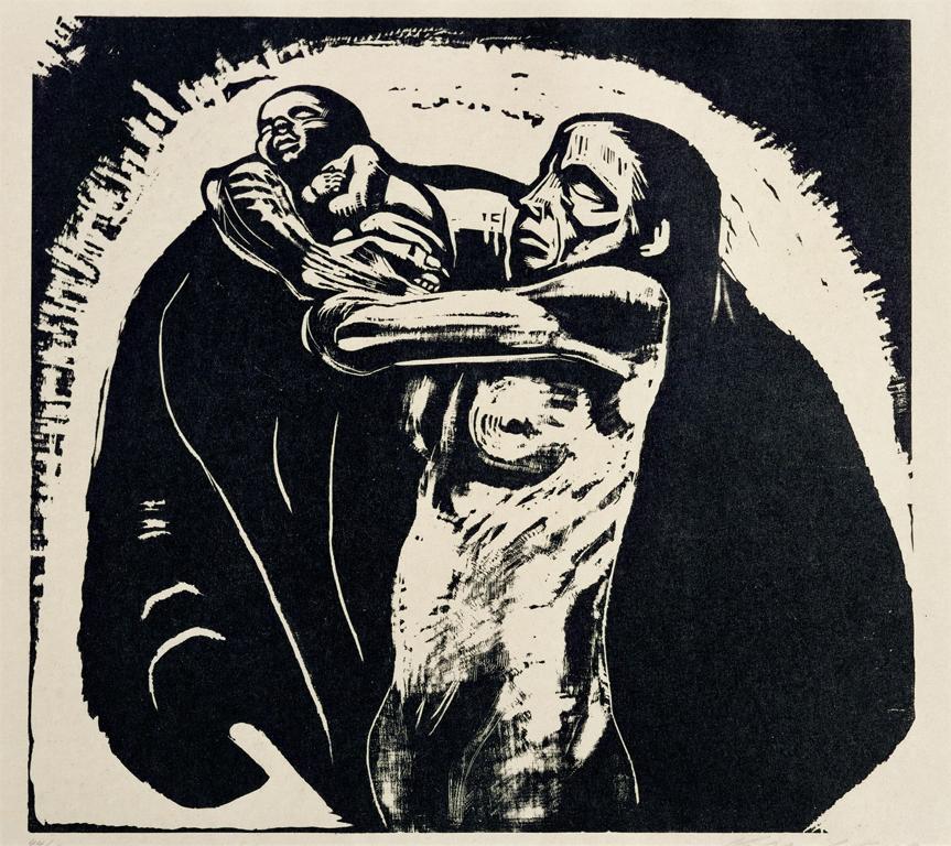 Käthe Kollwitz; The Sacrifice, first folio in series “The War”; 1922; xylography engraving; Kunsthalle Bremen, Germany