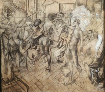 Otto Dix; Drawing for Grosstadt (detail of center); 1927