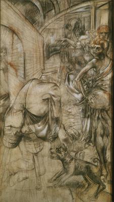Otto Dix; Drawing for Grosstadt (detail of right); 1927
