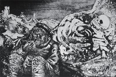 Otto Dix; Mealtime in the Trench; 1924; etching, drypoint; 19.6 x 29 cm