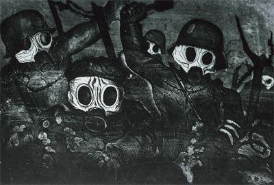 Otto Dix; The War Shock Troops Advance Under Gas; 1924; etching and drypoint; 19.6 x 29.1 cm; Art Institute of Chicago