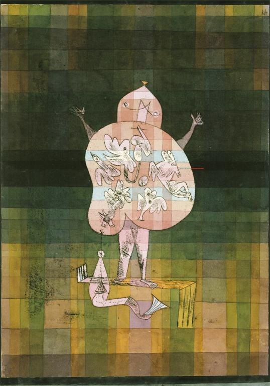 Ventriloquist and Crier in the Moor Date 1923 Material Watercolor and transferred printing ink on paper, bordered with ink Measurements H. 15-1/4, W. 11 inches (38.7 x 27.9 cm.)