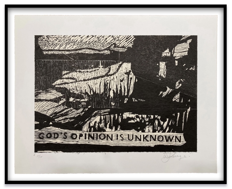 William Kentridge God’s Opinion is Unknown, 2019 15 3/4 x 20 3/8 in. (40 x 51.8 cm) Edition of 18 William Kentridge God’s Opinion is Unknown, 2019 15 3/4 x 20 3/8 in. (40 x 51.8 cm) Edition of 18