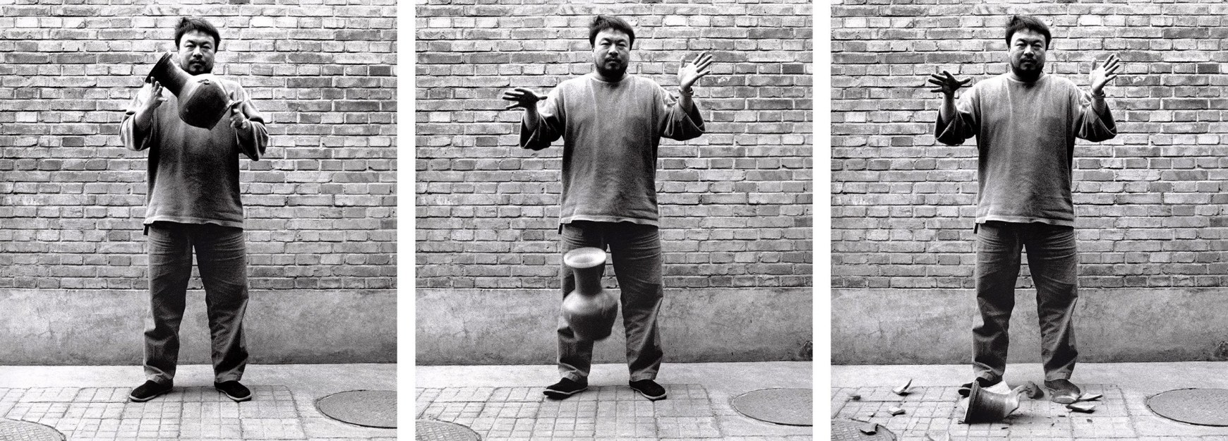 Ai Weiwei, Dropping a Han Dynasty Urn, 1995. Three gelatin silver prints, 148 x 121 cm each. Ai Weiwei Studio