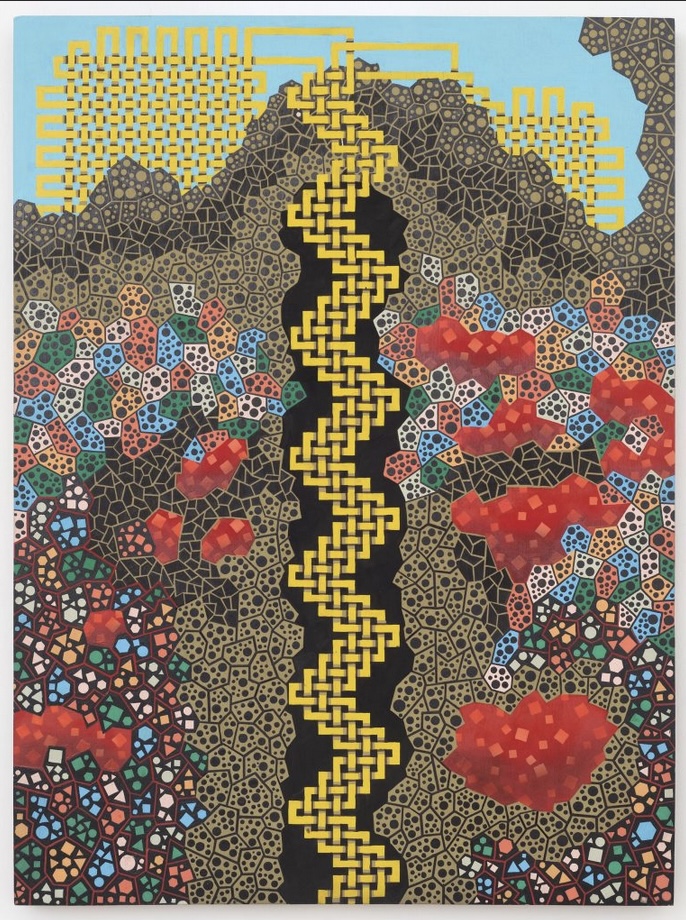 Mine (The Pits), 2018, gouache on panel, 24h x 18w inches