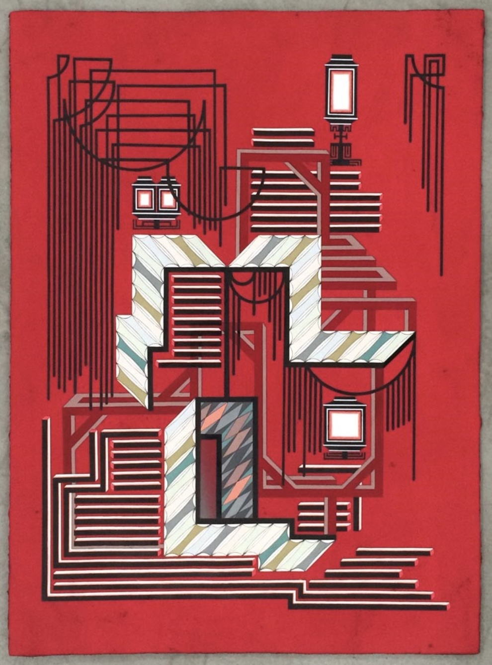 Untitled Building (Shapes) (2012), ballpoint pen, ink, and gouache on paper, 24 x 19 inches