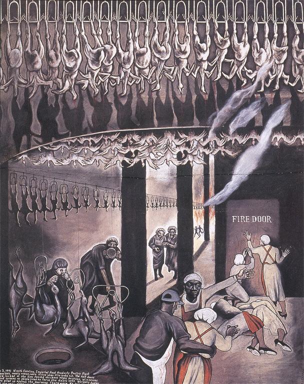 Sue Coe; Poultry Plant Fire; 1991; pastel, gouache, and pencil; 123.8 x 101.6 cm