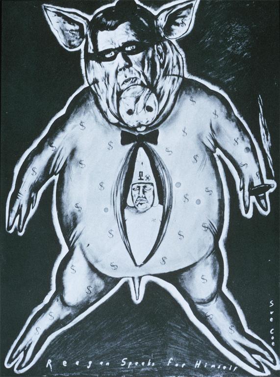 Sue Coe; Reagan as Pig; 1983; graphite on paper; 20 x 30 inches