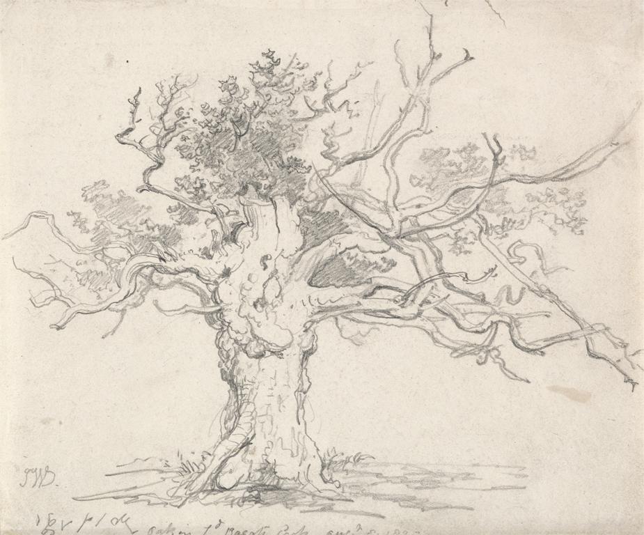 James Ward, A Stunted Oak, Graphite on medium, smooth, cream wove paper, 7 3/8 x 8 7/8 inches (18.7 x 22.5 cm), 1822.