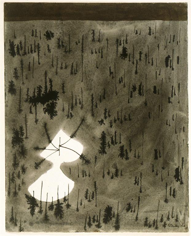 Stanley Twardowicz, ink with blue and brown ink wash on white wove paper, 13 5/16 x 10 5/8 in.; 33.8138 x 26.9875 cm, 1952.