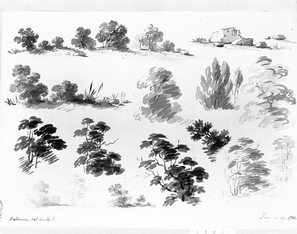 William Groombridge, Tree Sketches, wash on paper, 10.375 x 14.75 in., 18th C. x