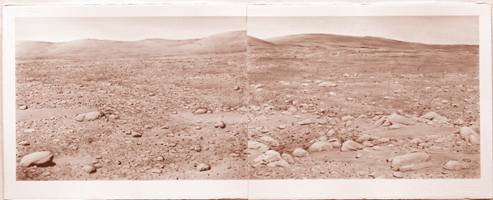 David Clarkson Columbia Hills, Mars Diptych sepia ink on paper 2008 22″ x 60″