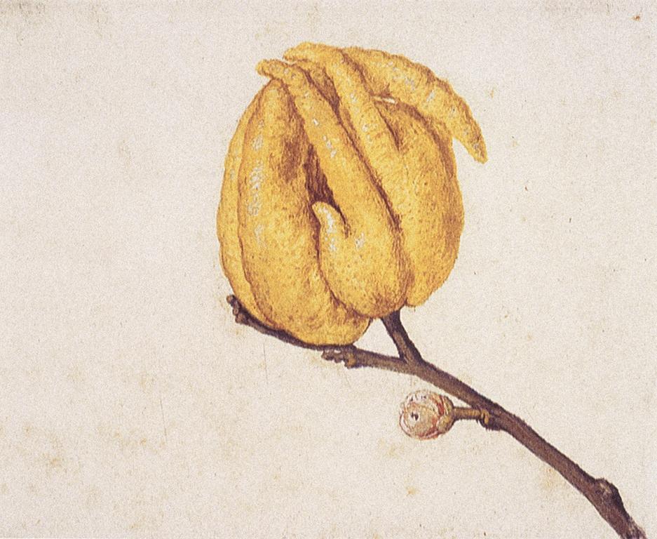 Vincenzo Leonardi; Lemon, Citrus limon (L.) Burm. f.: flowering twig; watercolor and bodycolor over black chalk; 276 x 189 mm