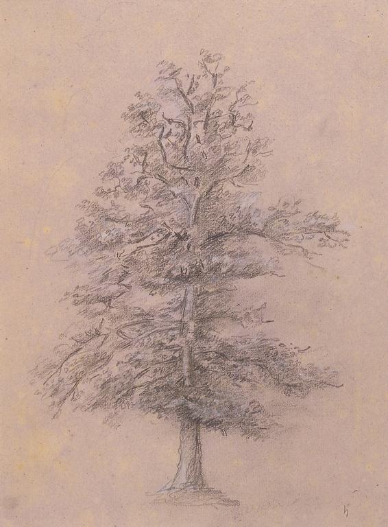 Théodore Rousseau; Tree Study; 1825; graphite and white chalk on lavender wove paper; The Minneapolis Institute of Arts