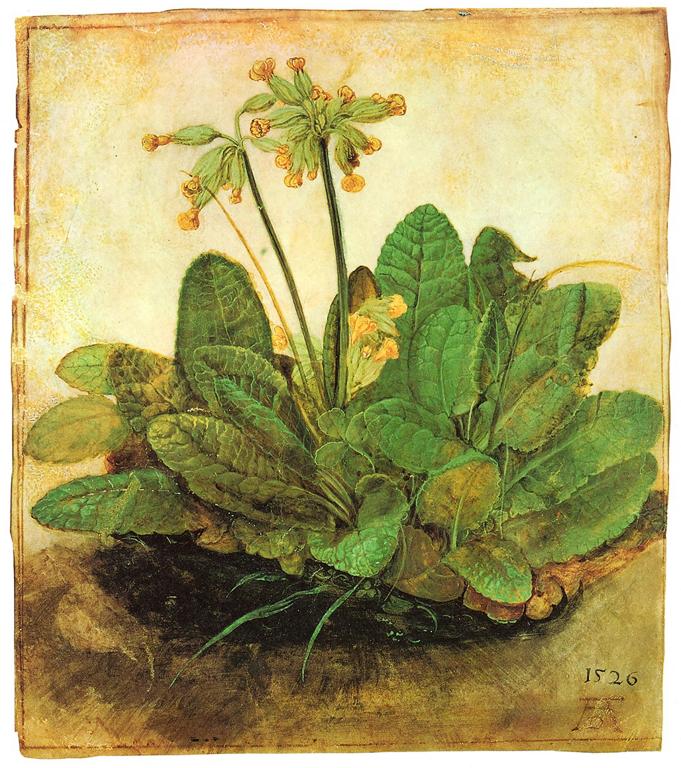 Albrecht Dürer; Tuft of Cowslips; 1526; watercolor and body color on vellum, brush, heightened with white; 192 x 168 mm; The Armand Hammer Museum of Art and Cultural Center, Los Angeles, CA