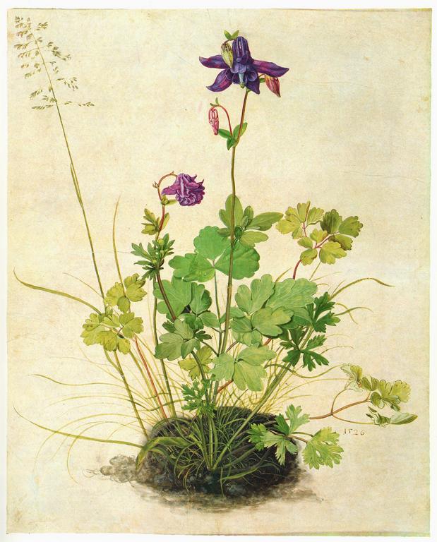 Albrecht Dürer; Columbine; 1526; watercolor and bodycolor, brush, heightened with white, on vellum, mounted on cardboard; 356 x 287 mm; Albertina, Vienna, Austria