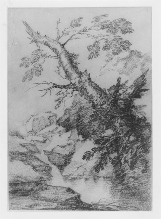 Peeter Boel; A Broken Tree Overhanging a Stream; 1637-74; black chalk, with some graphite; 350 x 248 mm; British Museum