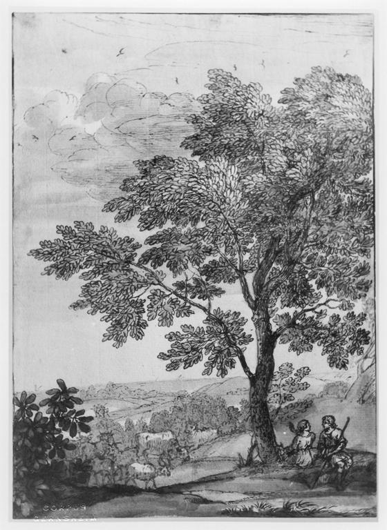 Claude Lorrain; Landscape with Herdsman and Shepherds Under Tree; British Museum