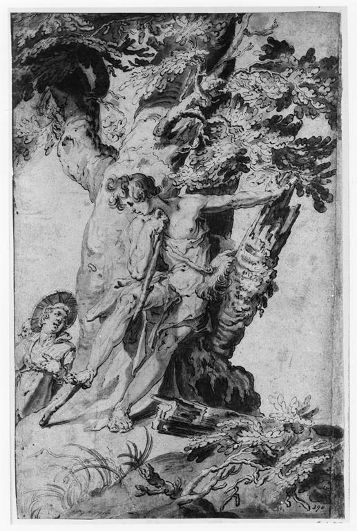 Abraham Bloemaert; Trunk of Tree with Two Figures; pen and wash; 260 x 166 mm; Victoria and Albert Museum