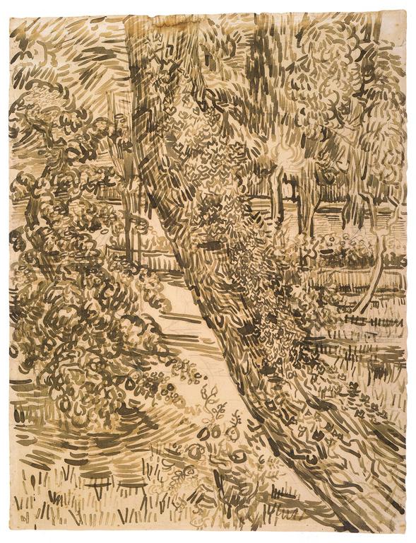 Vincent van Gogh; Tree with Ivy in the Garden of the Asylum at Saint-Rémy; 1889; reed pen, brush, and ink, graphite on laid paper; 61.8 x 47.1 cm; Van Gogh Museum, Amsterdam, North Holland, Netherlands
