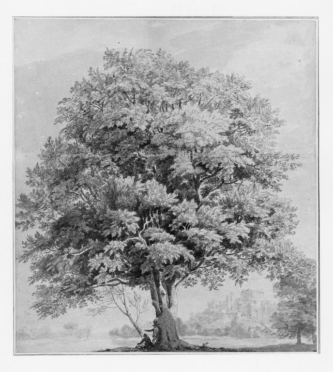 Paul Sanby; Study of a Tree: Windsor Castle in the Distance; c.1780s; watercolor, pen and ink over pencil on paper; Ashmolean Museum