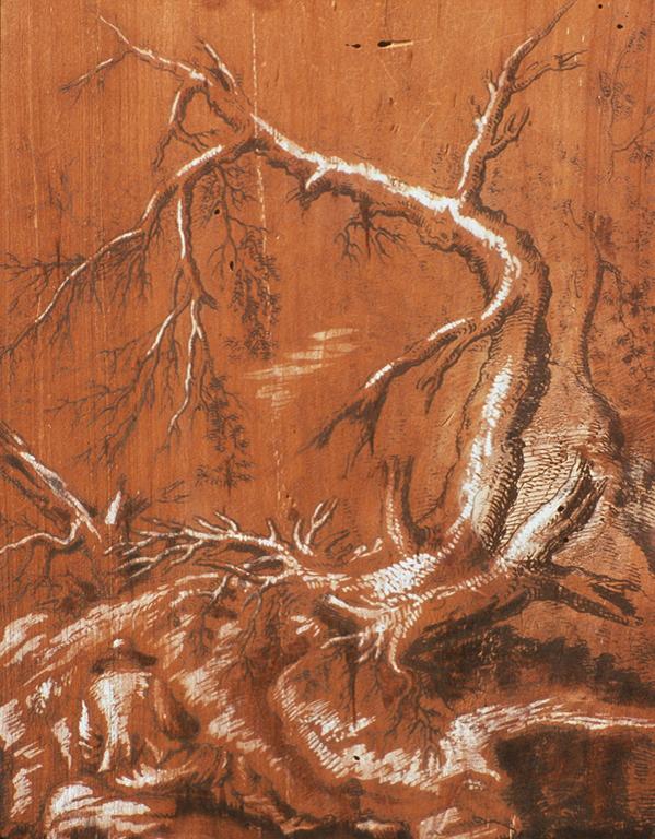 Salvatore Rosa; Landscape with Man and Tree; c.1649; feather and ink on wood; 28 x 50 cm; Palazzo Pitti