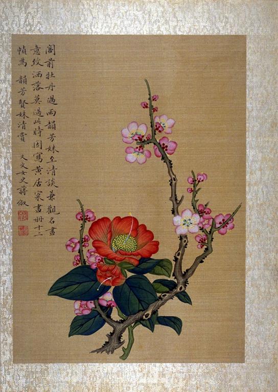 Chiang Su; Quince Blossoms; 18th century; opaque watercolor on silk mounted to paper support; 30 x 21.2 cm; Fine Arts Museum of San Francisco