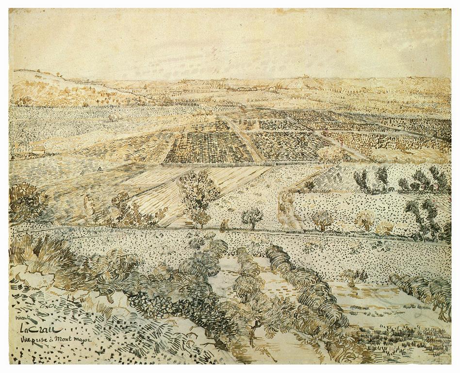 Vincent van Gogh; La Crau Seen from Montmajour; 1888; pencil, reed pen, brown and black ink on paper; 49 x 61 cm