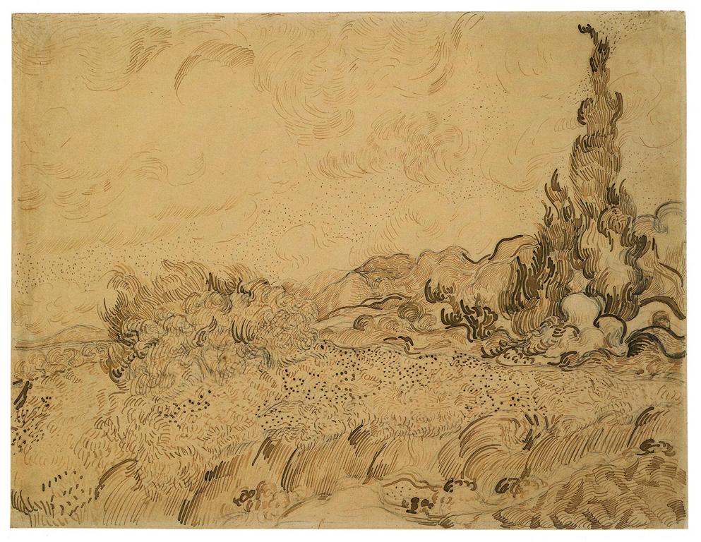 Vincent van Gogh; Wheat Field with Cypresses; 1889; reed pen, pen and ink, graphite on wove paper; 47.1 cm x 62.3 cm; Van Gogh Museum
