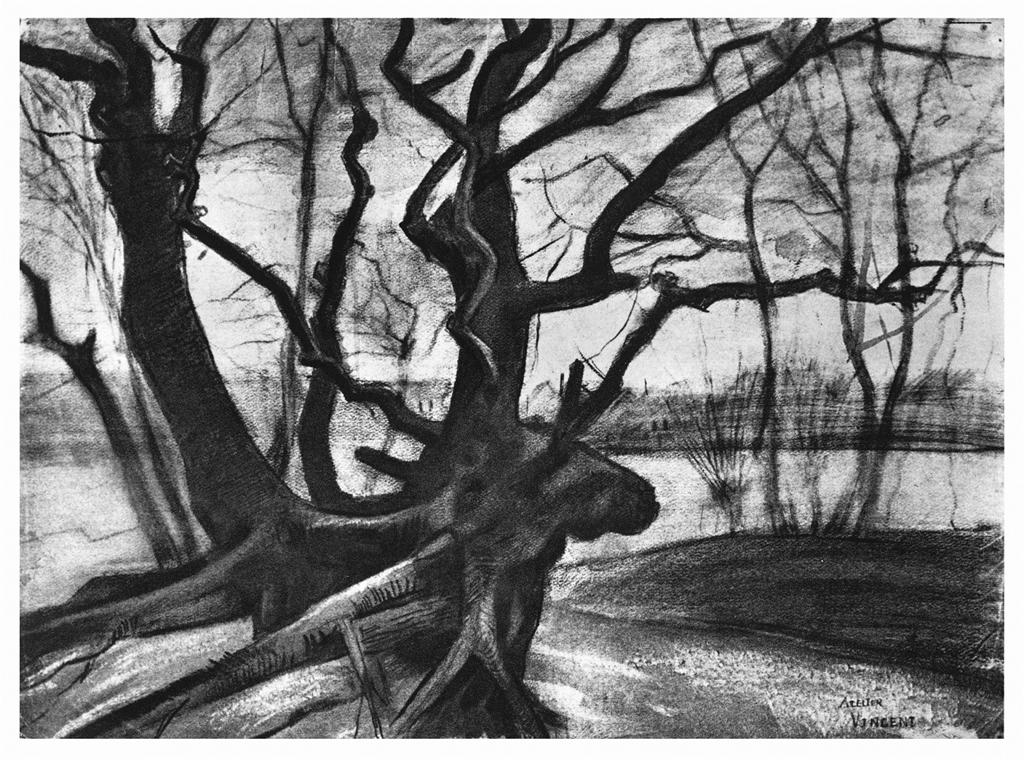 Vincent van Gogh; Study of a Tree; 1882; crayon, pencil, watercolor, lightly washed; 48.9 x 68.6 cm; Kröller-Müller Museum, Otterlo, Netherlands