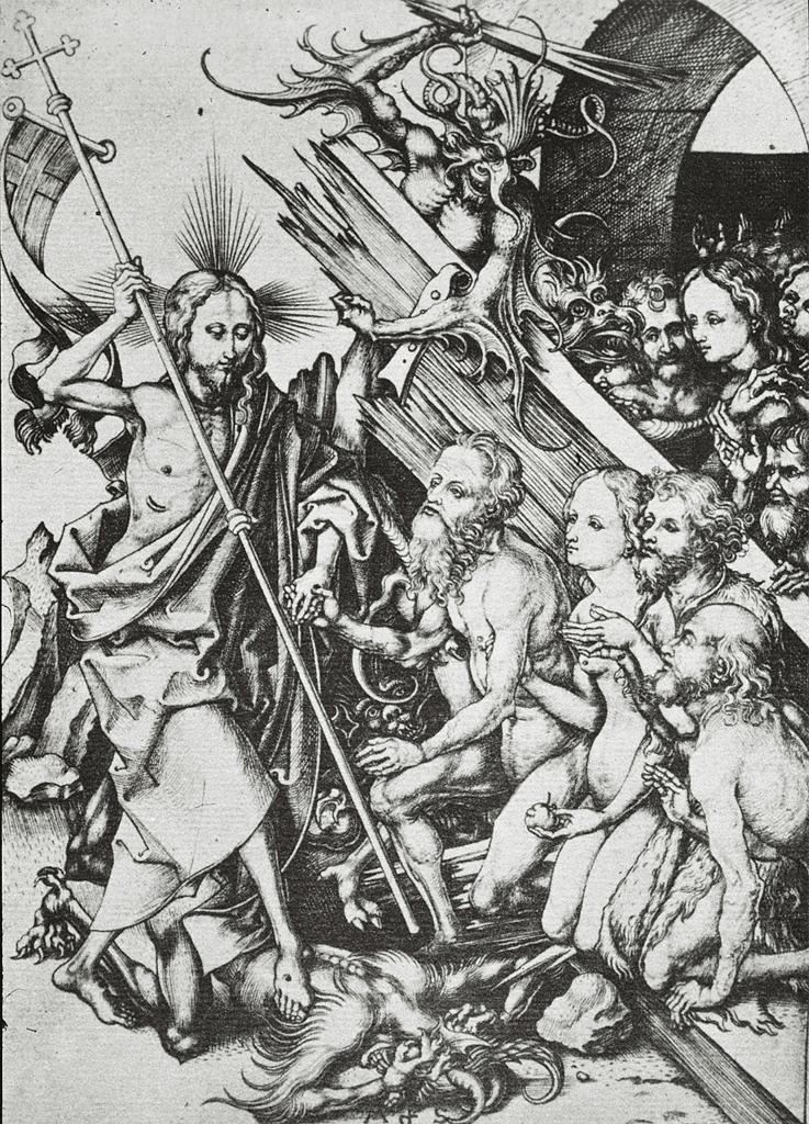 Msrtin Schongauer, 15th cent,Twelve Scenes Illustrating Christ’s Passion:Christ in Limbo , 1480, engraving, 164x116mm
