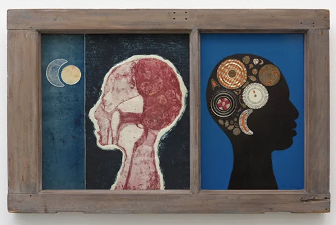 Betye Saar, “The Phrenologer’s Window II,” 1966. Etching, Collograph Collage, Paint