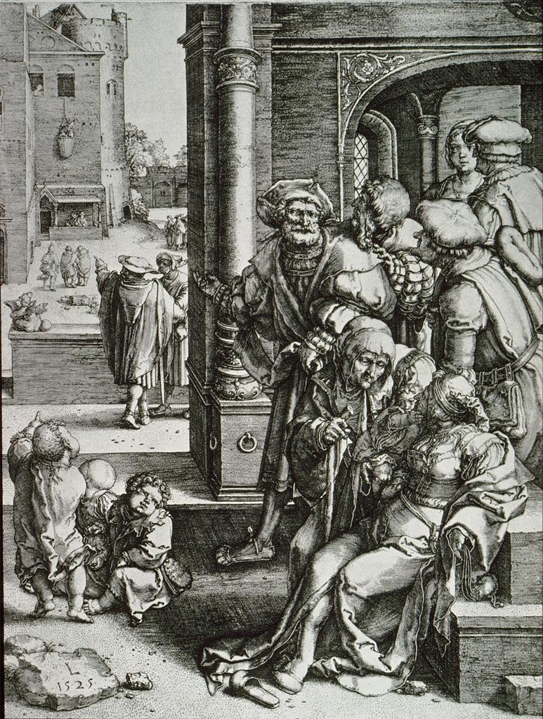 Lucas van Leyden; Virgil Suspended In a Basket; engraving; 1525