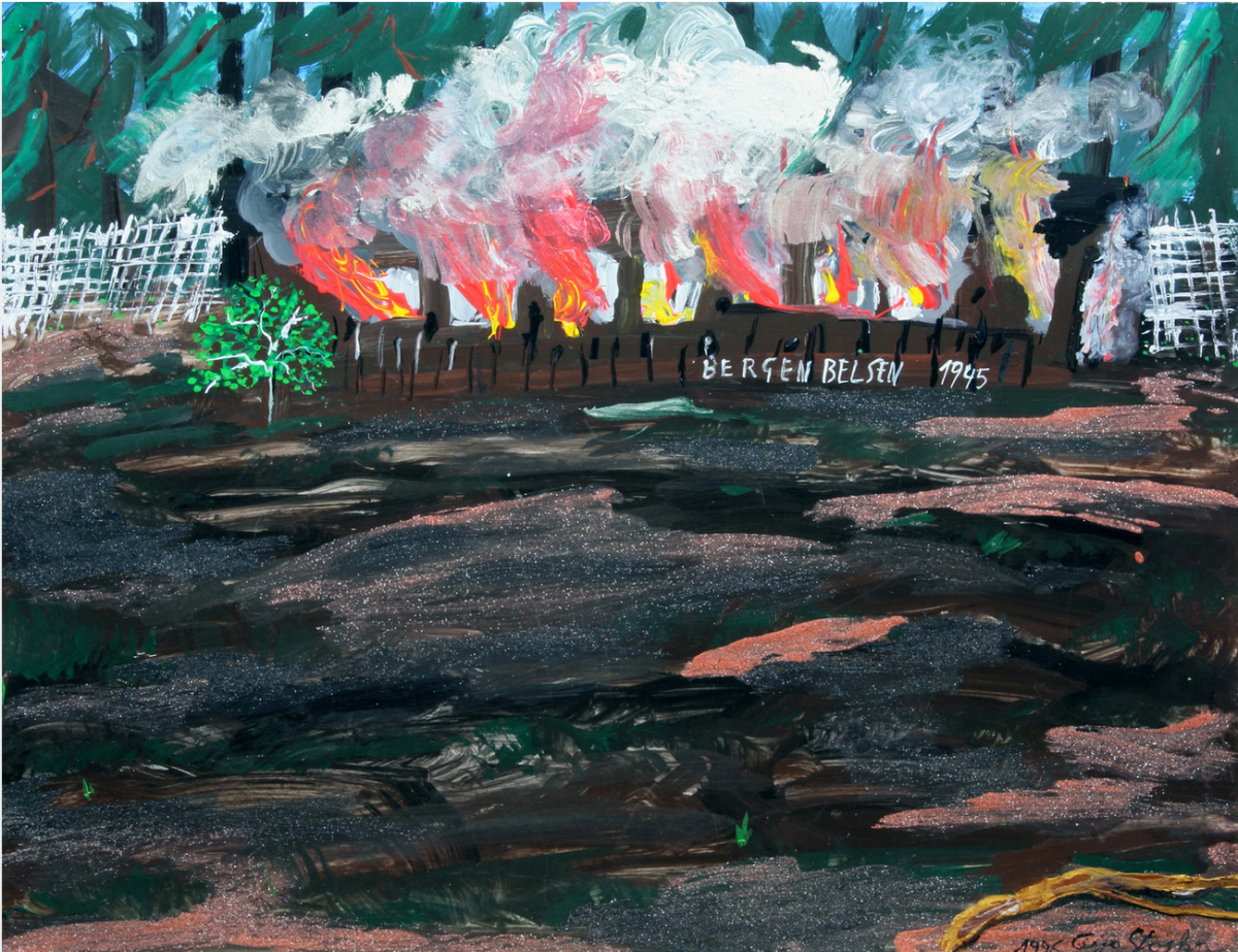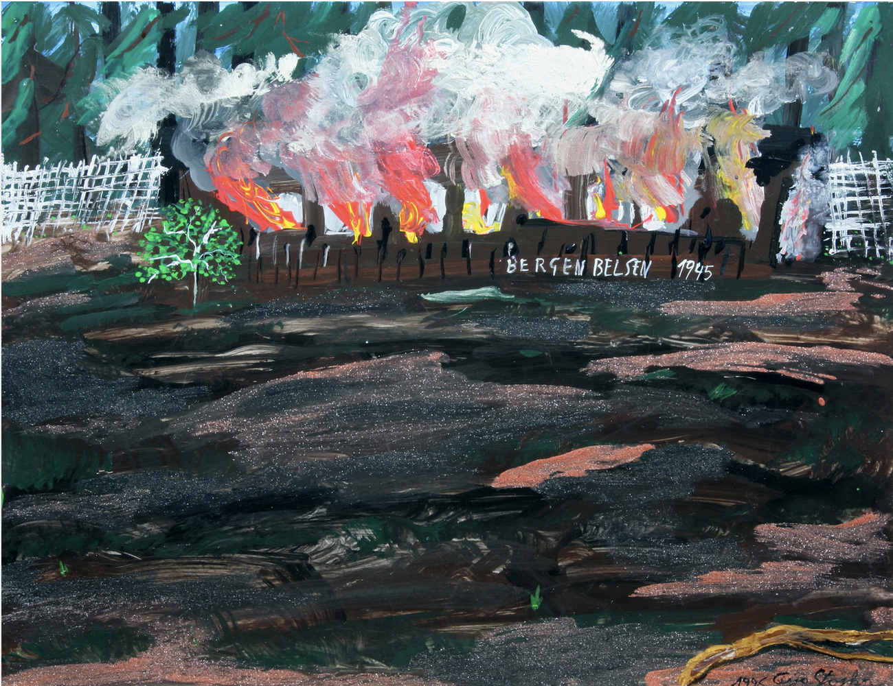 Bergen-Belsen, 1945, 1996, Acrylic and colored sand on cardboard 50 x 65,5 cm, Private collection, Paris