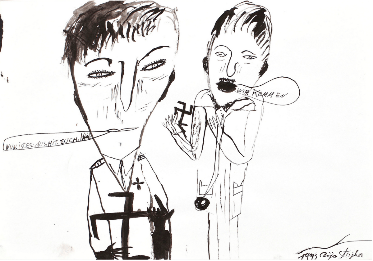 Nun. ist. es. aus. mit. euch. Heil – Wir kommen – You’ve Had It Now. Heil – We’re Coming, 1993, Ink on paper 29,5 x 42 cm, Private collection, Paris