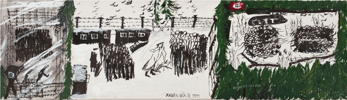 Ravensbrück, 1944. Befreiung, 15.4.1945 – Ravensbrück, 1944. Liberation, 15.4.1945, 1999, Acrylic on canvas, 30 x 100 cm, Private collection, Paris