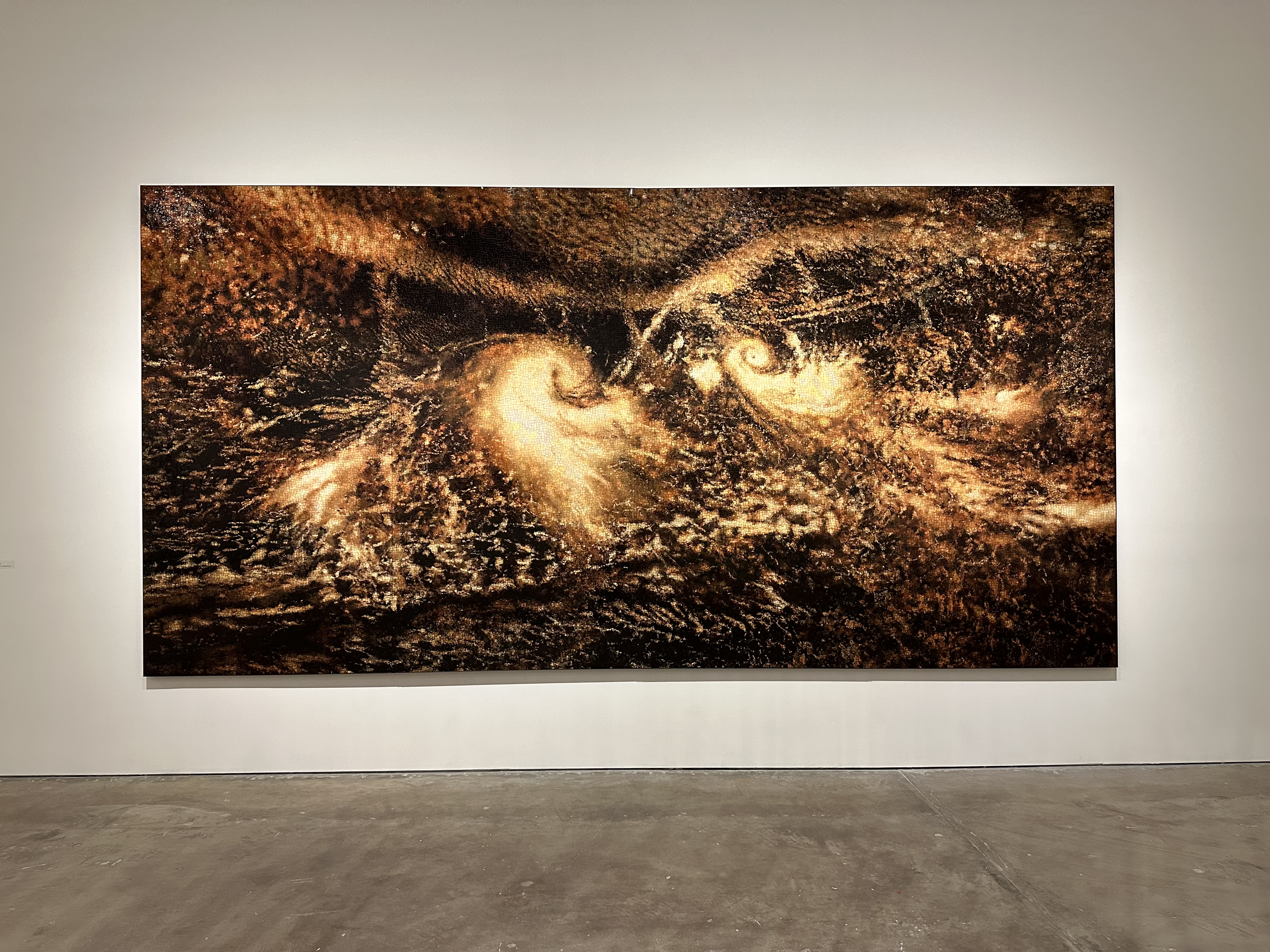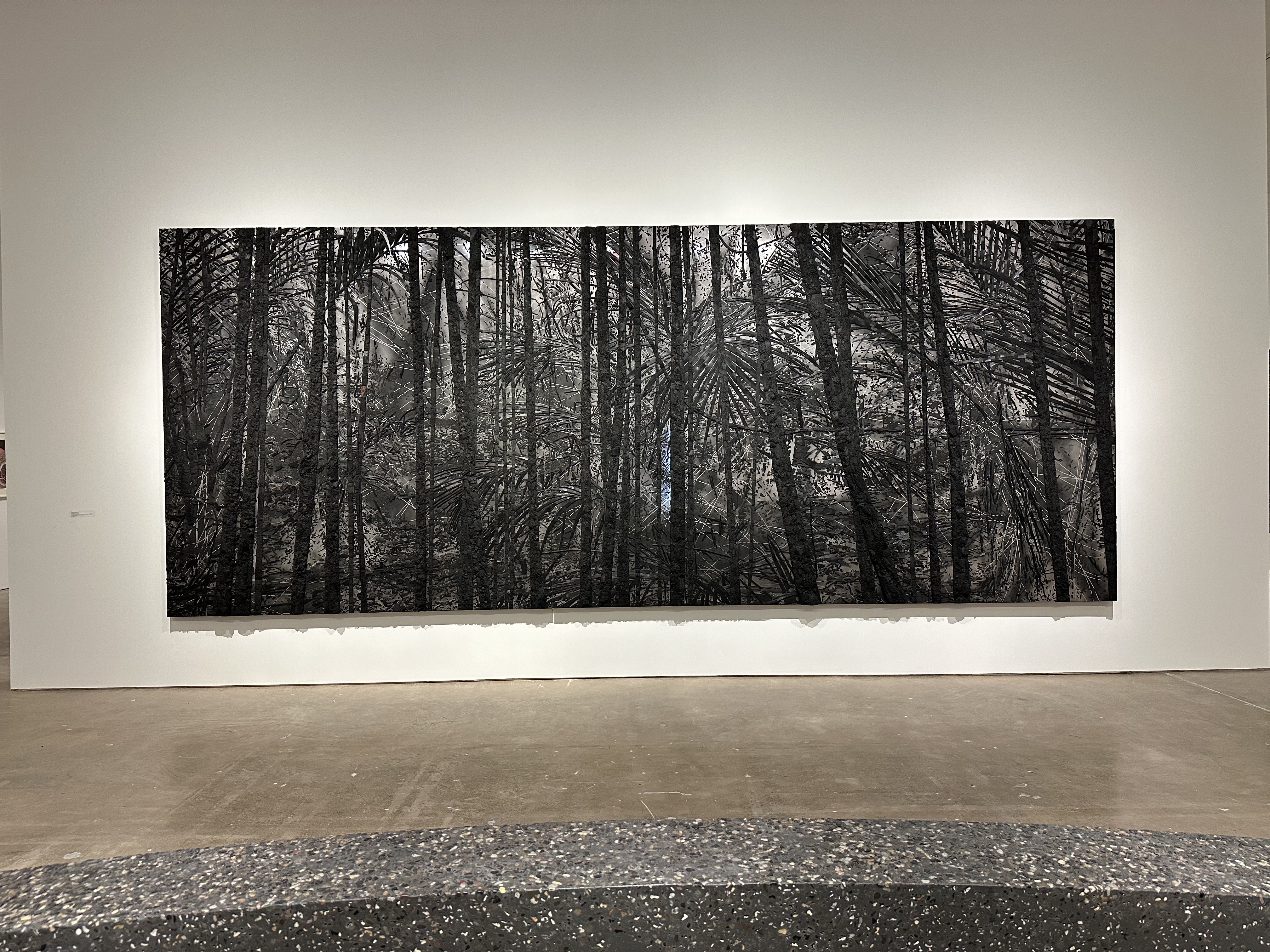Teresita Fernández, Manigua (Mirror), 2023 Charcoa, black sand, mixed media on aluminum panel