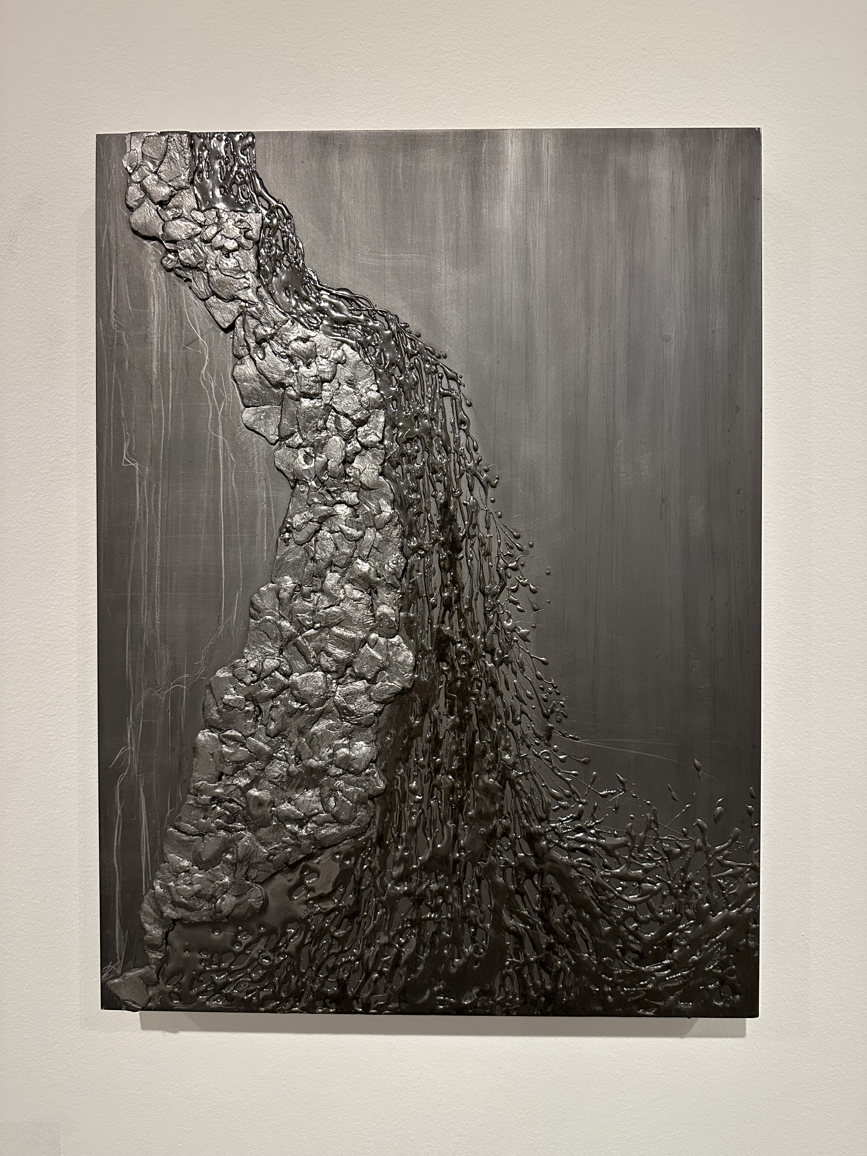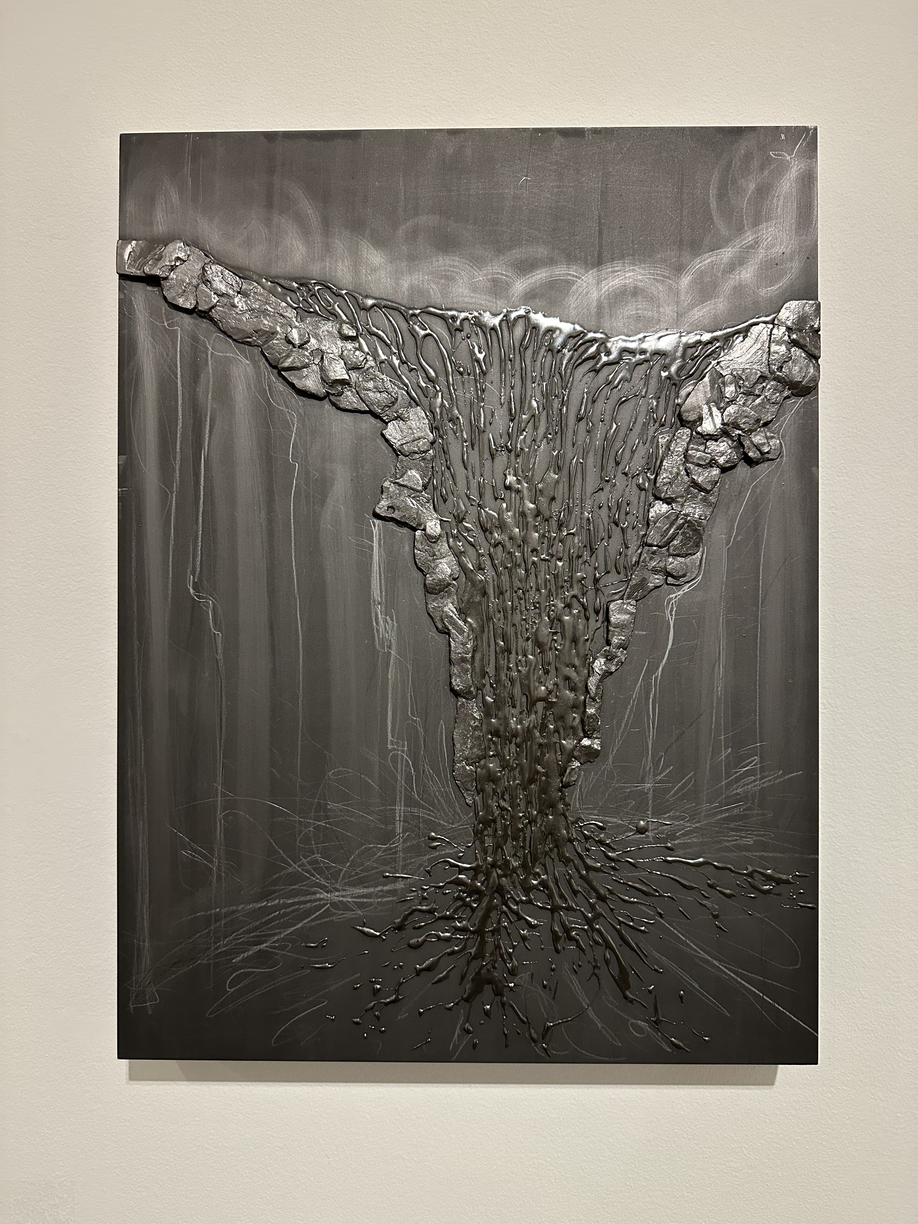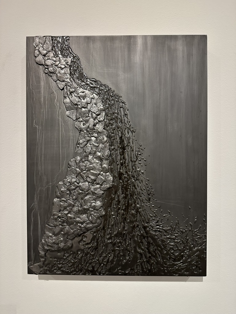 Teresita Fernández, Manigua (Mirror), 2023 Charcoa, black sand, mixed media on aluminum panel