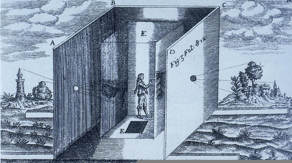 Althanasus Kircher; Large Portable Camera Obscura; 1646; engraving