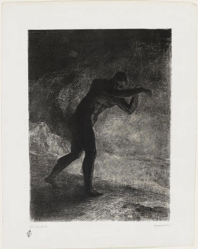 And man appeared, questioning the earth from which he emerged and which attracts him, he made his way toward somber brightness Plate 8 from the set The Origins