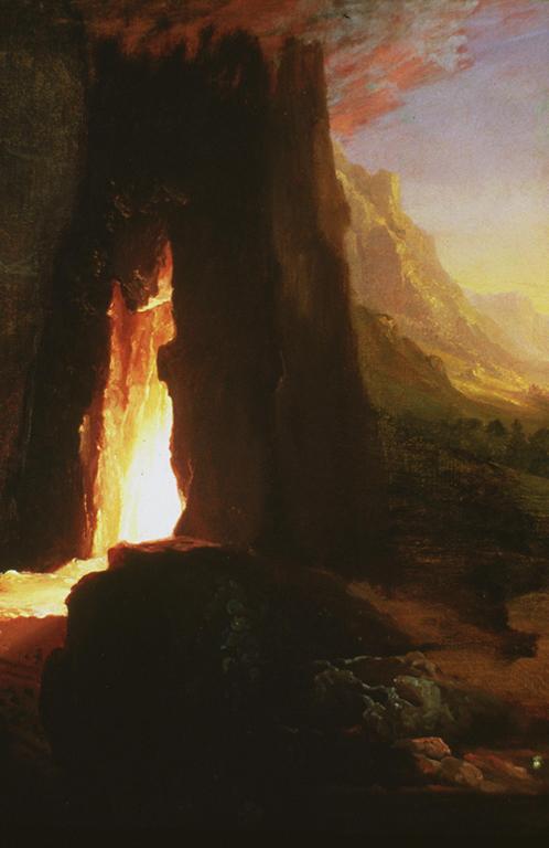 Thomas Cole; Expulsion: Moon and Firelight (detail); c.1827; oil on canvas; Joslyn Art Museum