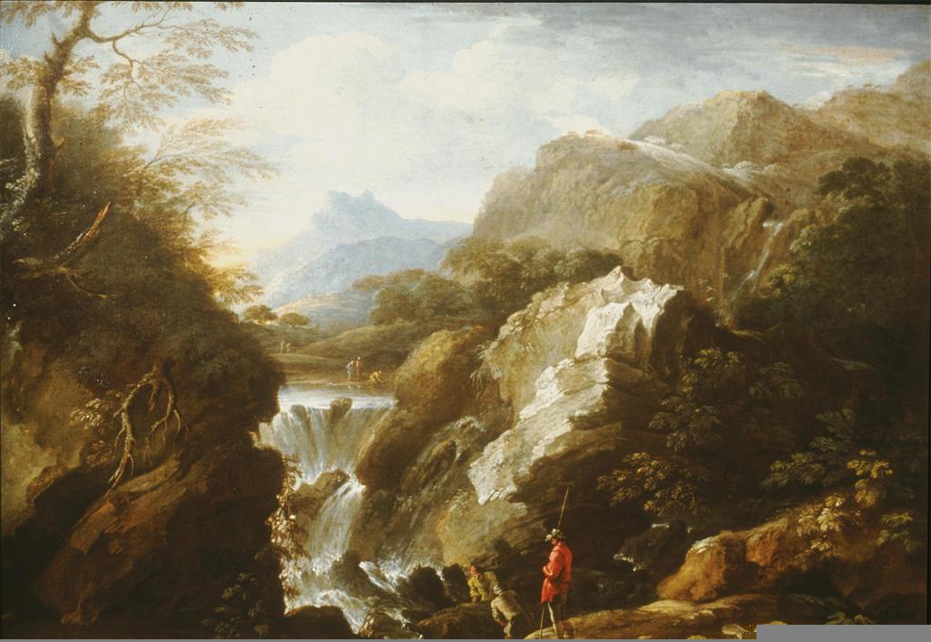Salvator Rosa; Rugged Landscape with a Waterfall; 100 x 135 cm; Glasgow Art Gallery and Museum