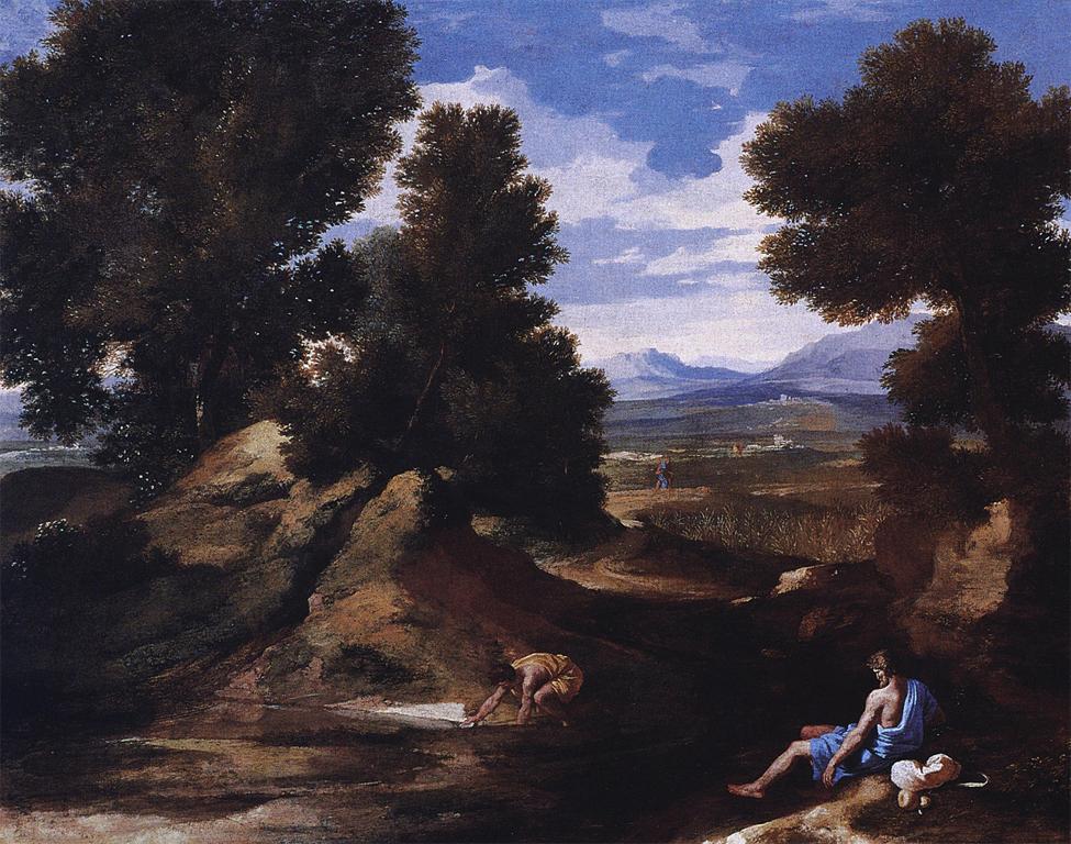 Nicolas Poussin; Landscape in the Roman Campagna with a Boy Drinking from a Stream; oil on canvas; 63.1 x 78.8 cm; National Gallery (Great Britain)