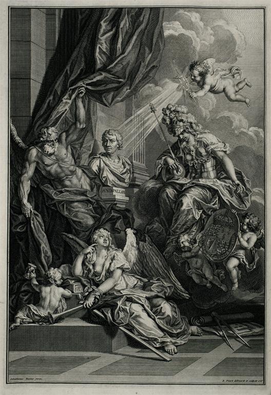 Giacomo Leoni; The Bust of Palladio Surrounded by Allegorical Representations of the Arts; 43.81 x 28.26 cm; Elizabeth Barlow Rogers Collection (new York, NY)