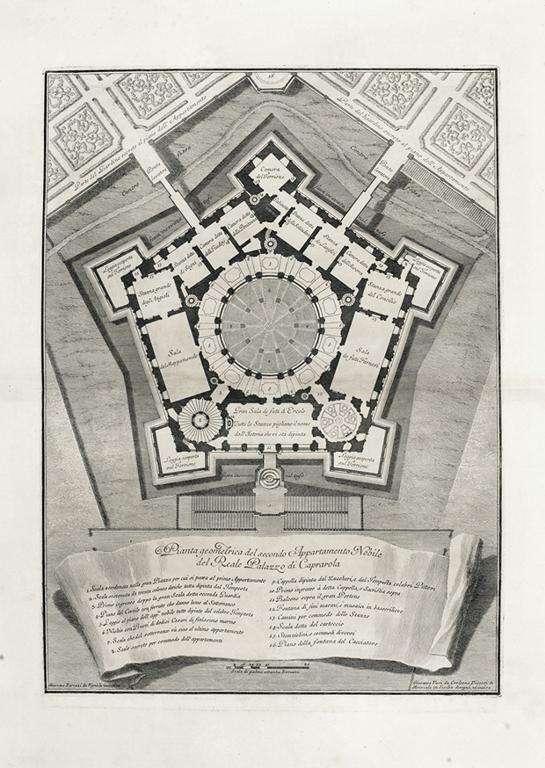 Giuseppe Vasi; Geometrical plan of the piano nobile of the royal palace of Caprarola; etching; c.1748; Elizabeth Barlow Rogers Collection