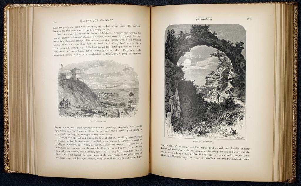 William Cullen Bryant (author), Thomas Moran (artist); Picturesque America, View of the Forest and Town, Arched Rock by Moonlight; 1872