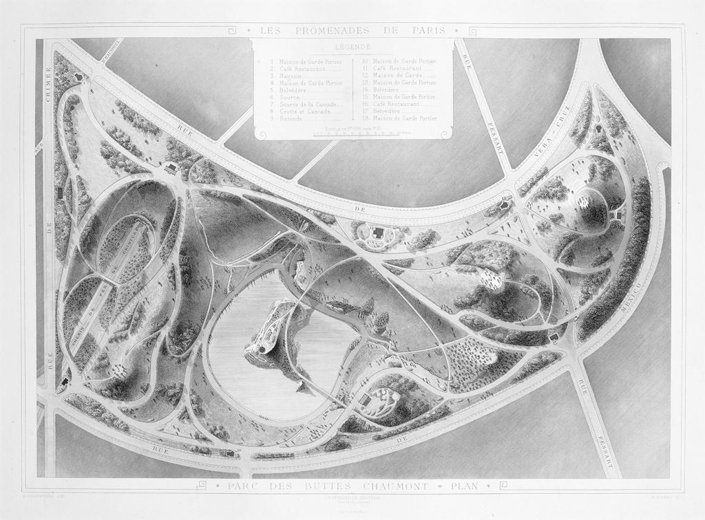 Jean Charles Adolphe Alphand; Parc des Buttes Chaumont; 1867-73